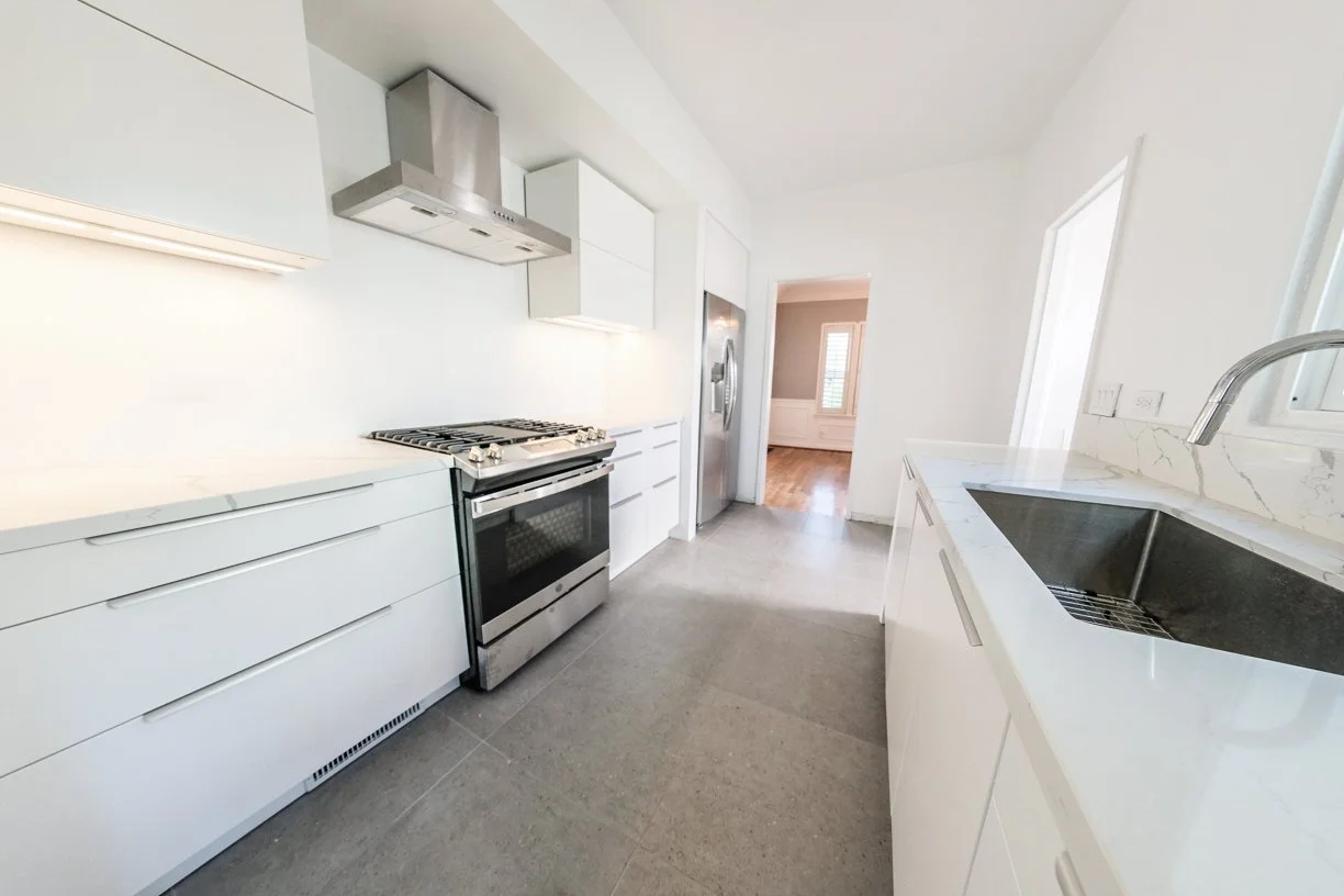 The home offers a bonus room in the corner which would make a perfect nursery or office. The show stopper here is the kitchen. Beautiful quartz counters with custom tile backsplash, slow closing new cabinets, a deep farm-house style stainless sink, a disposal, new dishwasher, new gas range with hood and massive new stainless refrigerator will greet the cook. The other corner features a formal dining room with original hardwood floors, a custom chandelier, wainscoting, built-in storage shelving, and wooden plantation style shutters. Your new home offers private laundry off the garage across the yard, a good sized rear yard (shared, but no neighbors really use it), and a one car private garage with tesla EV charging connector. It's been upgraded with a new tankless hot water heater and new electrical service, and new central heating and air conditioning throughout.