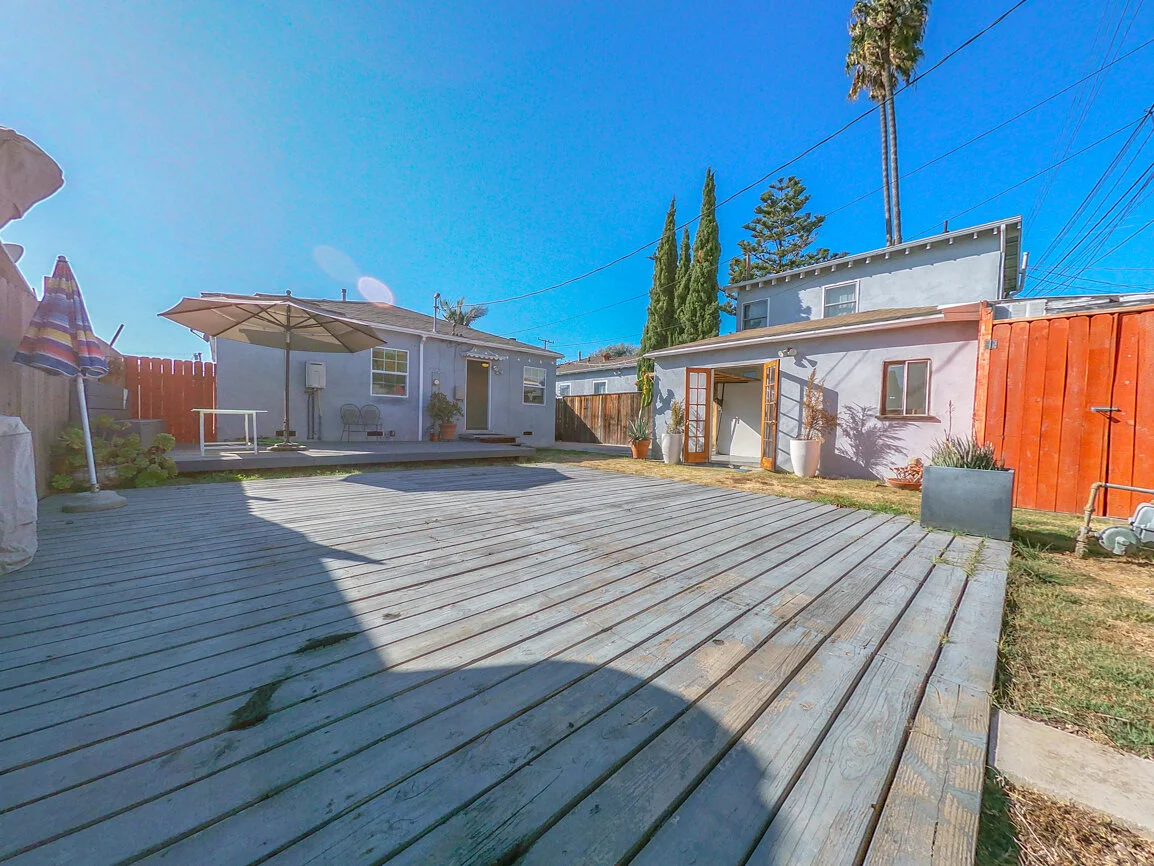 Charming vintage indoor-outdoor living! All bedrooms offer hardwood floors with new dual-pane windows. The kitchen sports oversized refrigerator, gas stove, dishwasher with disposal. The side entry has laundry hookups. Two cars can easily fit in the driveway. The rear yard offers a massive deck for entertaining with built-in seating, fire pit, heat lamp and detached 1 car garage which is best used as an office or studio.